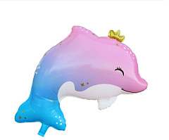Шар (25"/64 см) Фигура, Дельфин с короной, 1 шт. в уп.