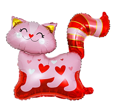 Шар (29''/74 см) Фигура, Котик с сердечками, Розовый, (надув воздухом), 1 шт. в уп.