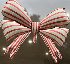 Шар (31"/79 см) Фигура, Бант, Кремовый, Красные полосы, Сатин, (надув воздухом), 1 шт. в уп.
