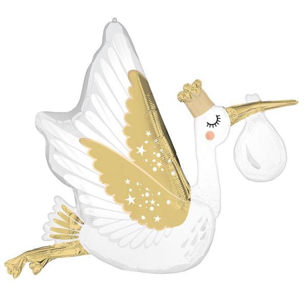 Сложная, объемная, фольгированная фигура в форме аиста. При надувании рекомендуется использовать гелий. Имеет встроенный клапан, что упрощает надувание. Тонкая миларовая (фольга на полиэтиленовой основе) пленка позволяет шарам не сдуваться от недели до одного месяца. Фольгированный шар продается ненадутым, в индивидуальной, красочной упаковке. Размер шара: 35"/88см ш x 28"/71см