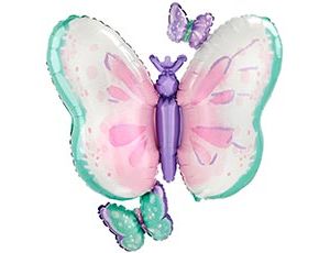 Сложный, объемный фольгированный шар в форме нежных порхающих бабочек. При надувании рекомендуется использовать гелий. Имеет встроенный клапан - что упрощает надувание. Тонкая миларовая (фольга на полиэтиленовой основе) пленка позволяет шарам не сдуваться от недели до одного месяца.