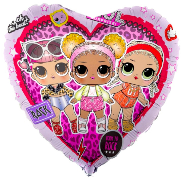Шар (18''/46 см) Сердце, Кукла, Стильные подружки, Розовый, 1 шт.