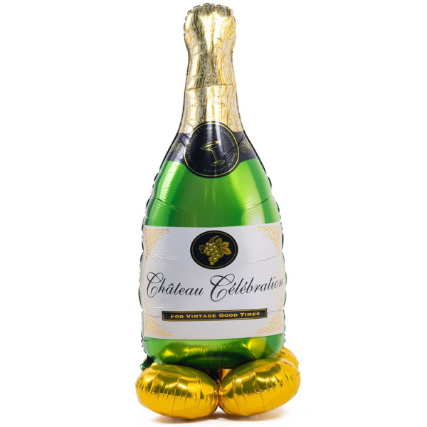 Фольгированный шар A Шар 3D (62"/157 см) Фигура на подставке, Бутылка Шампанского, 1 шт. в уп.