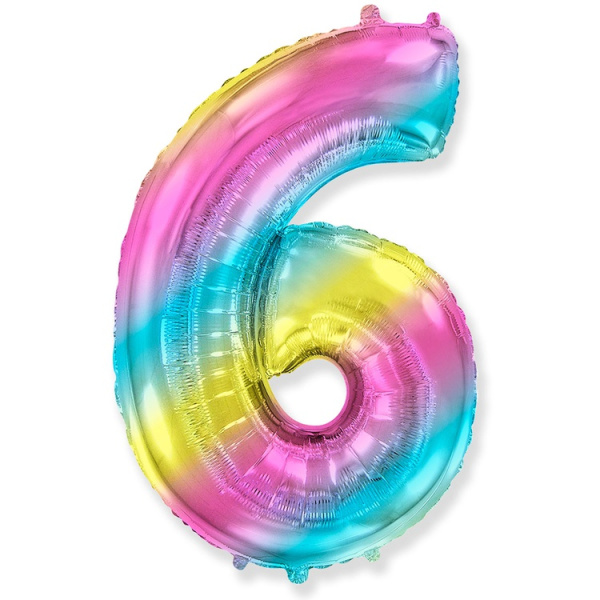 Ф Шар (40''/102 см) Цифра 6/9, Радуга, Градиент, 1 шт. в уп.