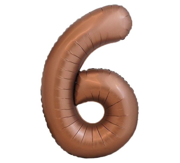 Шар (40"/102 см) Цифра 6, Шоколад, Сатин, 1 шт. в уп.