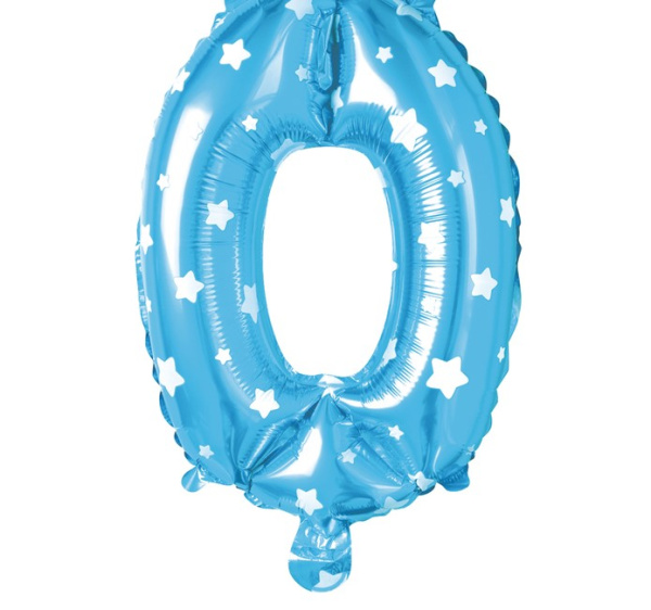 Шар (16"/41 см) Цифра 0, Звёзды, Голубой, 1 шт. в уп.