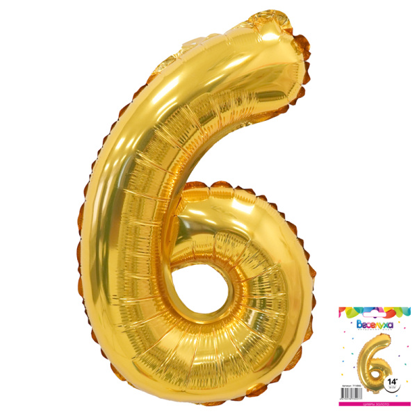 Фольгированный воздушный шар Цифра 6 Золото в упаковке - прекрасно подходит для оформления детских праздников, а также может использоваться в качестве дополнения композиции с шарами. Шары в форме цифры используют для обозначения памятного события связанного с датой или количеством лет.