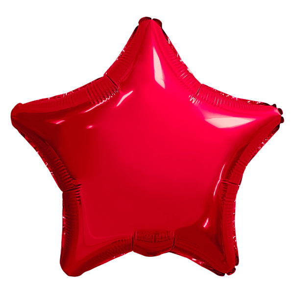 Одноцветный шар в форме звезды. Приспособлен под гелий. Фольгированные воздушные шары изготавливаются из тонкой миларовой пленки, позволяющей шару не сдуваться в течении нескольких дней. Фольгированные воздушные шары надувают через клапан. Поэтому плотно надутый шар завязывать не требуется - обратный клапан хорошо удерживает гелий внутри шара. К шару привязывают ленту только для того, чтобы шар не улетел. Сдувшийся фольгированный шар можно поддуть гелием или воздухом и он всегда будет иметь товарный вид.