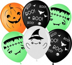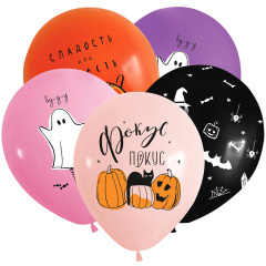 Воздушный Шар (12''/30 см) Привидения на Хэллоуин, Ассорти, пастель, 5 ст, 25 шт.